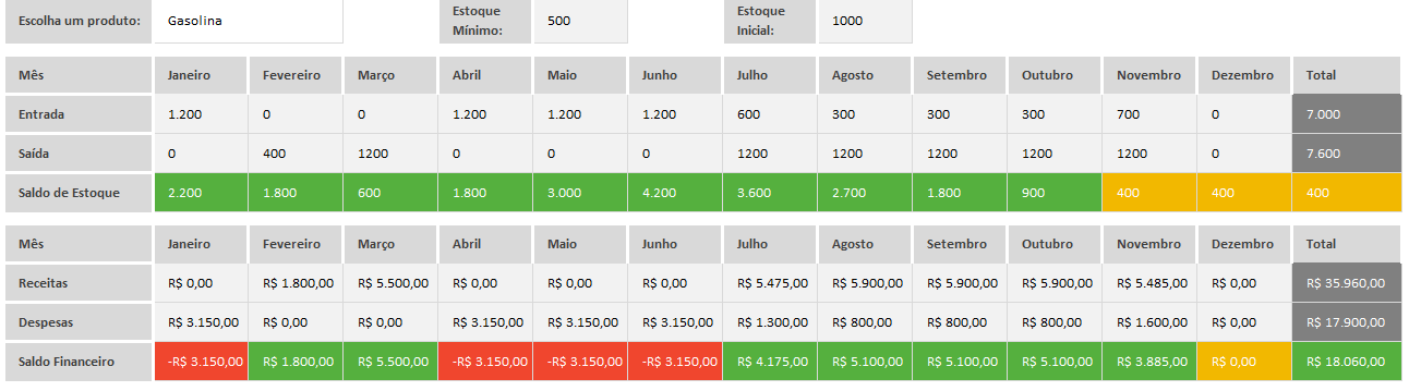 Acompanhamento de receitas e despesas mensal que mostra se seu posto de combustível está tendo lucro ou prejuízo