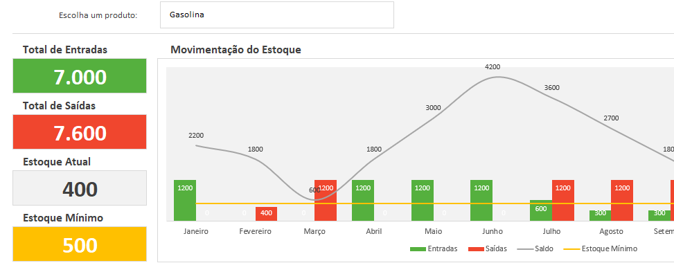 Escolha um produto e veja os principais indicadores relacionados a quantidade disponível para venda