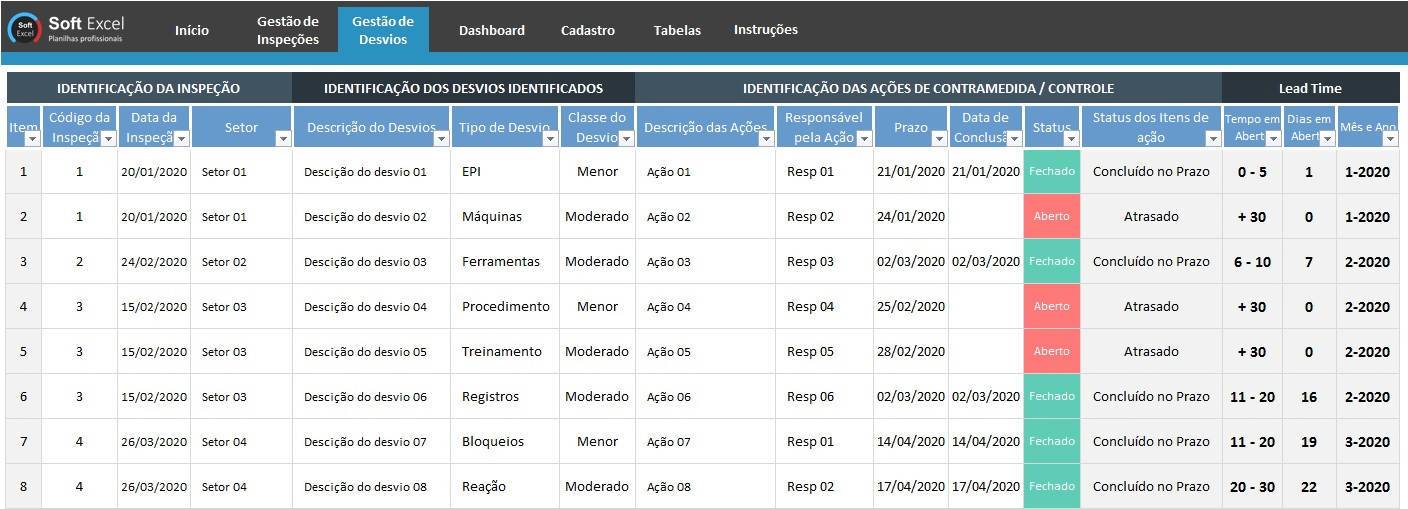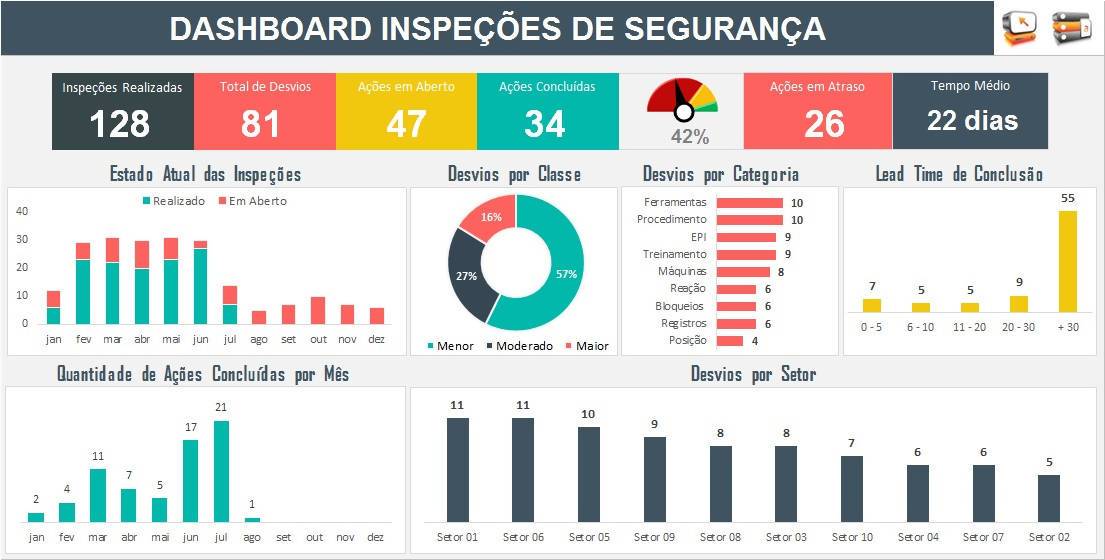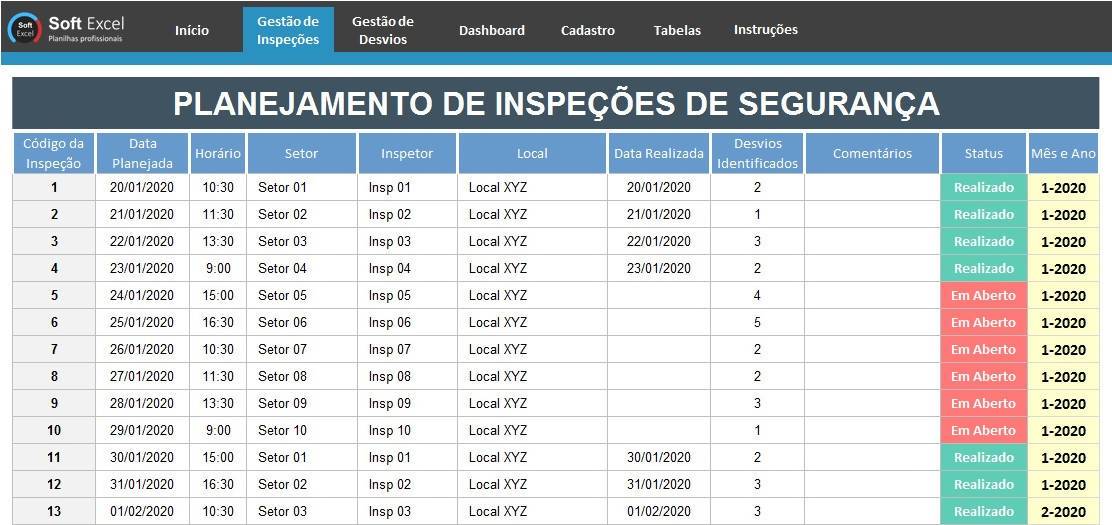 Utilize esta Planilha de Gerenciamento de Inspeções de segurança do Trabalho para organizar e otimizar o planejamento anual de inspeções e auditorias e para registrar os desvios identificados e as ações para solucionar os desvios. Tenha o controle total em suas mãos.