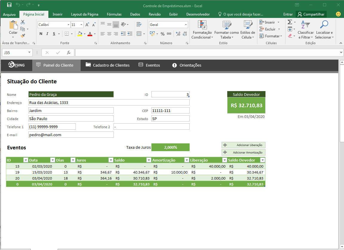 Com essa planilha você pode controlar facilmente empréstimos feitos a clientes. Pode ser usada por agiotas ou empresas de empréstimos.