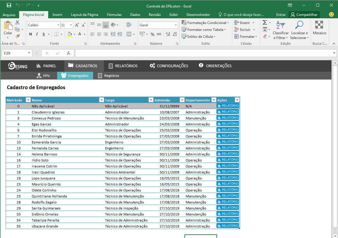 A ficha de EPI, emitida automaticamente pela planilha, é um documento legal onde os empregados registram, mediante assinatura, que receberam os equipamentos necessários à realização de suas atividades e treinamento na sua utilização.
